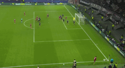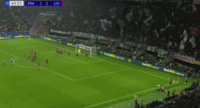 第35分鐘,?;倏朔磽魡蔚镀崎T,利物浦1-1扳平法蘭克福