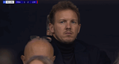 第42分鐘,德國(guó)主帥納格爾斯曼來(lái)到現(xiàn)場(chǎng),觀看兩隊(duì)比賽